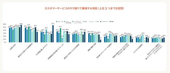 また、サービスのやりとりにおける最も重要な要素として、アジア太平洋地域の消費者は迅速な対応を重視する傾向がある。