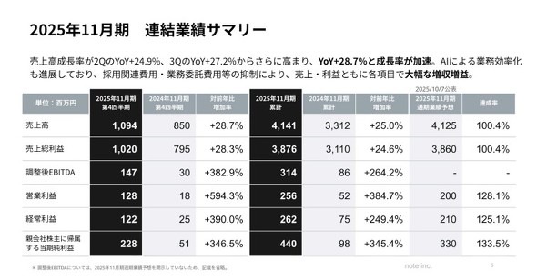 しかし、noteの2025年11月期の決算は、こうした悲観的な予測を鮮やかに覆すものであった。