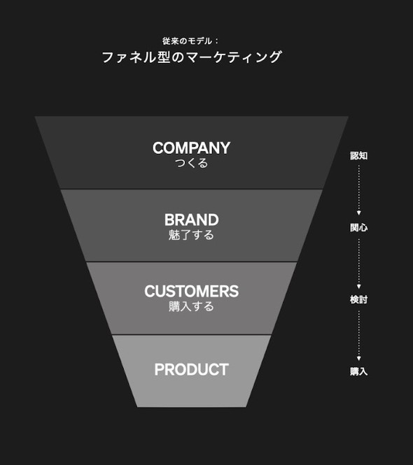 マーケティングファネルの考え方が完全になくなるわけではないし、イナモト氏がマーケティングの手法を否定しているわけでもない。「ブランド構築の観点で言えば、マーケティングファネルとは異なる、新たなフレームワークが必要だ」ということである。